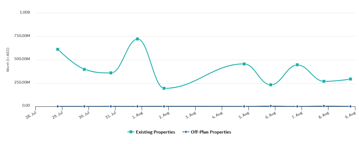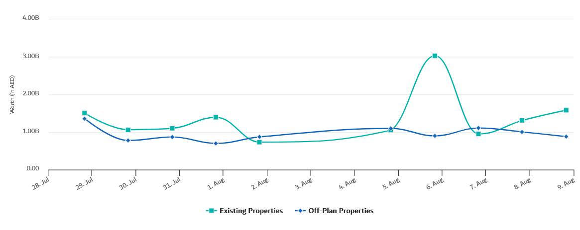 Daily transactions on Friday reached 2.78 billion dirhams from 822 actions. Sales were 2.46 billion dirhams from 24 deals, mortgages were about 293 million dirhams from 120 actions, and gifts were worth 28 million dirhams from 17 transactions.