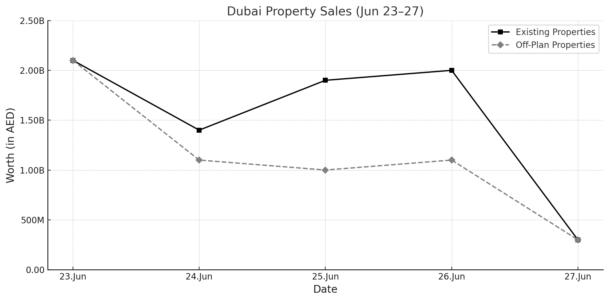 Ready property sales in Dubai reached AED 7.4 billion through 1,639 transactions, while off-plan property sales amounted to AED 5.3 billion across 2,333 deals.