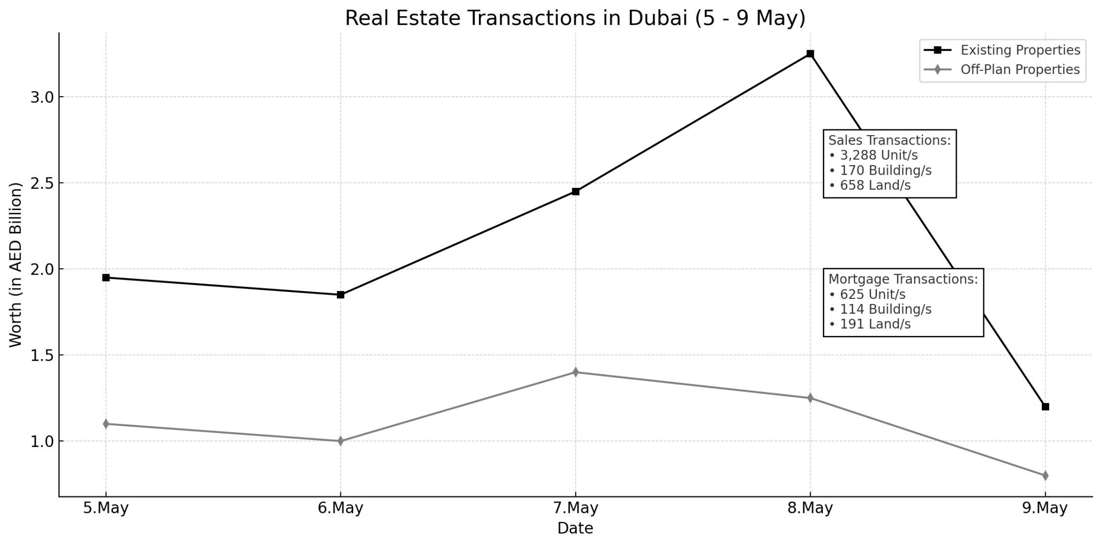 Additionally, 160 gift transactions were registered with a total value of AED 740 million. Weekly sales deals were distributed as follows: 658 land sales, 3,288 unit sales, and 170 building sales.