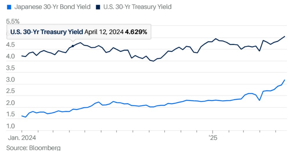 As the world witnesses a sharp rise in long-term interest rates, attention is turning to a phenomenon that began in Japan and may soon ripple through global markets. Yields on 30-year Japanese government bonds have surged past 3%, prompting Japanese investors to repatriate their funds instead of investing in U.S. Treasuries.