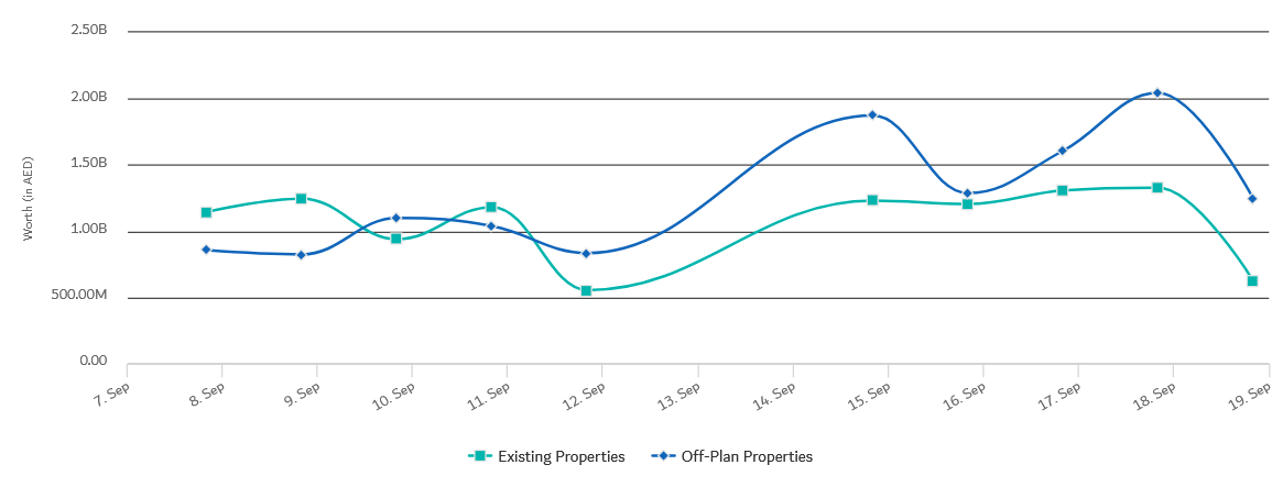 The Trade Center area topped the list in terms of sales value with AED 913 million, followed by Business Bay with AED 792 million, Dubai Investments Park 2 with AED 781 million, Palm Jumeirah with AED 713 million, and Jumeirah Village Circle with AED 594 million.